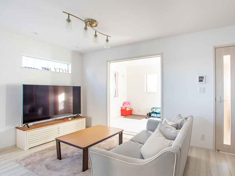 広がりのあるリビングと隣接するコンパクトな和室が、ちょうどいいバランスを生み出しています。